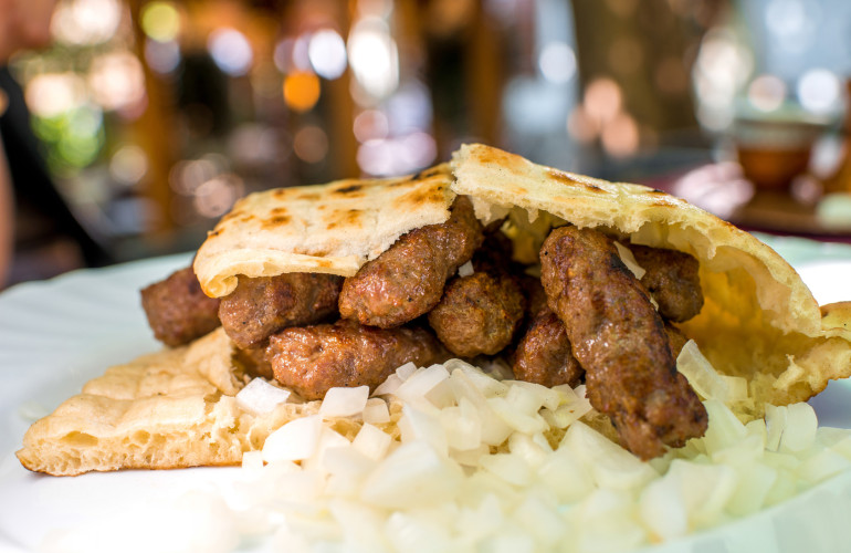 Nella foto: piatto di cevapcici con pane e cipolla.