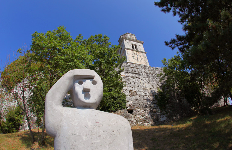 Nella foto: la rocca e chiesa di Monrupino (Repentabor), a poco più di 10 Km dal centro di Trieste (Friuli-Venezia Giulia).